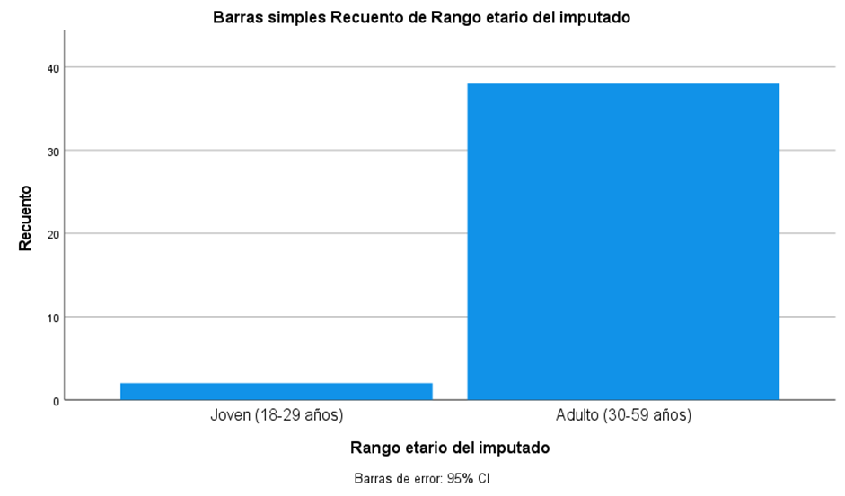 - La ausencia total de varones jóvenes imputados indica que, en el periodo estudiado, los hombres de 18-29 años no lograron o no alcanzaron posiciones con suficiente control sobre caudales públicos como para ser penalmente responsables por peculado.